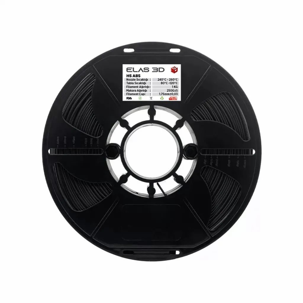 Elas 3D Siyah Hs ABS Filamentin Özellikleri: