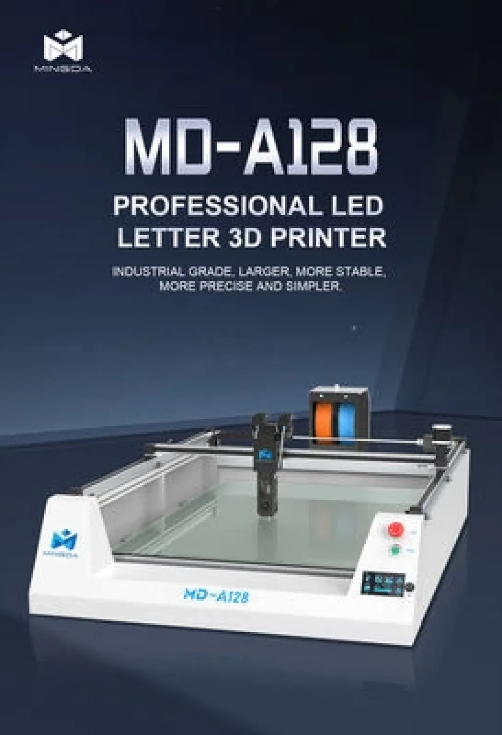 Mingda MD-A128 LEDli 3 boyutlu tabela/logo ( LED channel letter ) üretimi için 3D Yazıcı ; reklam ve tanıtım tabelaları, ışıklı tabelalar, yönlendirme amaçlı işaretçi ve levhalar oluşturmak için kullanabilecek bir 3D yazıcıdır. Kutu harfler çok farklı dış kabuk (shell) ve çeşitli renklerde oluşturulabilir ve daha sonra bir araya getirilerek ışıklı tabelalar yapılabilir!