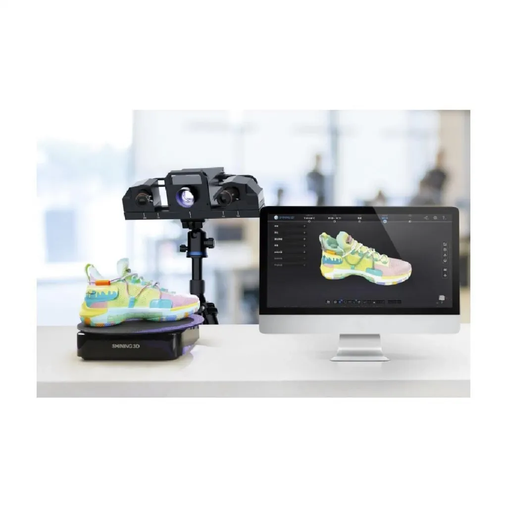 Shining 3D Transcan C 3D Tarayıcı SHINING3D, Transcan C'yi çok çeşitli endüstriler için küçükten orta büyüklükteki nesnelere kadar olağanüstü yüksek çözünürlüğünü ve doğru taramalarını yakalayan profesyonel düzeyde bir 3D tarayıcı olarak geliştirdi. 12 MP kameralar, fiziksel nesnenin sezgisel bir görüntüsünü veren zengin ve ayrıntılı dokulu 3D model üretir.