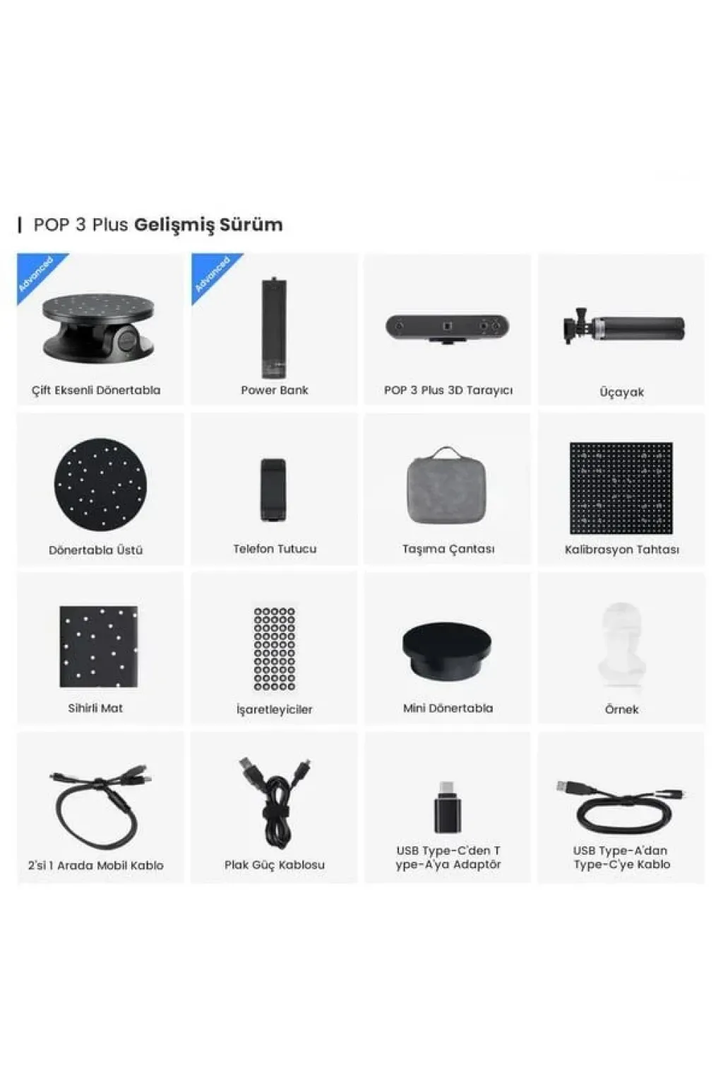 Revopoint, yüksek kaliteli çözümler sunarak farklı alanlardaki kullanıcıların gelişmiş 3D tarama teknolojisinden faydalanmasını sağlıyor. Kutunun İçindekiler;