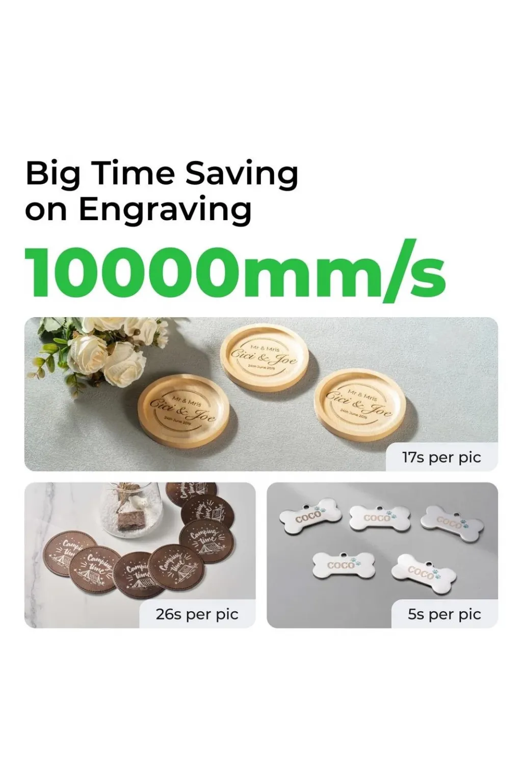 10.000 mm/s'lik rekor hız, hızlı ve verimli prototipleme yapmayı sağlar ve üretim süresini önemli ölçüde kısaltır. Takı, hediyelik eşya veya müşterilere özel ürünler tasarlarken, bu makinenin akıllı yol planlaması, kaliteyi koruyarak maksimum verimlilik sağlar.
